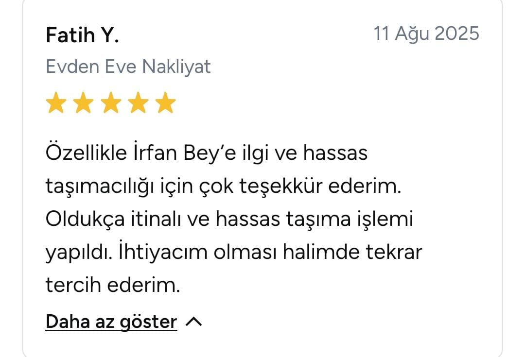 Müşteri memnuniyetini her zaman ön planda tutan firmamız, zamanında teslimat, şeffaf fiyatlandırma ve kaliteli hizmet ilkeleriyle çalışmaktadır. Taşınmanın stresli bir süreç olduğunun farkındayız; bu nedenle her aşamada planlı, dikkatli ve çözüm odaklı bir yaklaşım benimsiyoruz.